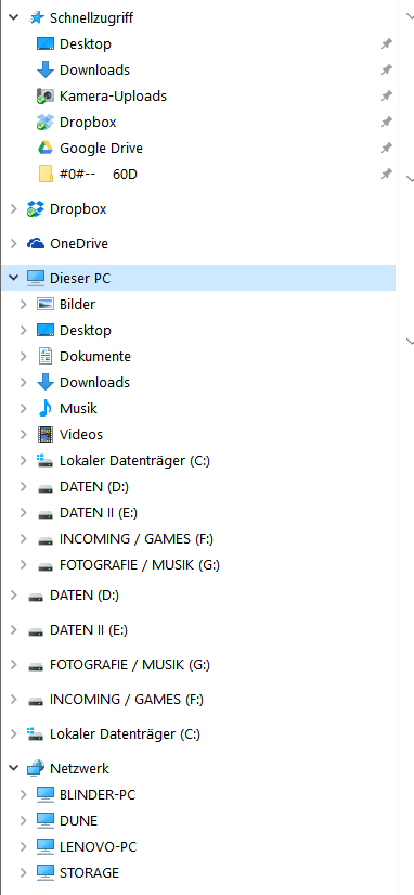 Ganz ehrlich: wie kann man den Explorer modifizieren? Niemand braucht eine Auflistung der Laufwerke nach Laufwerksbuchstaben unter "Dieser Computer" und dann noch zusätzlich ne alphabetische Auflistung der Laufwerke als Verknüpfung (oder was auch immer).