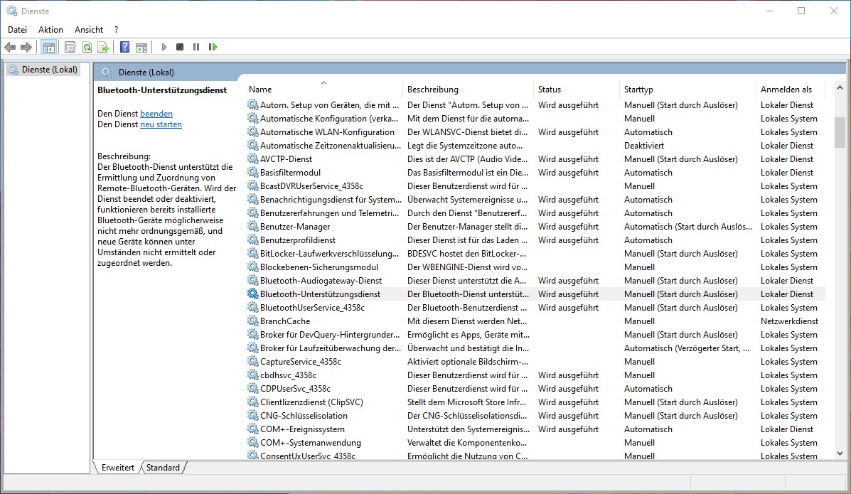 Meine Lösungsansätze waren da dann erstmal PC neustarten (auch mit deaktiviertem Schnellstart), dann Bluetooth- und WLAN-Geräte inklusive Treiber deinstallieren ("Treibersoftware für dieses Gerät löschen" im Task-Manager), deinstallieren der Intel Bluetooth-Software unter Software, weiterer Neustart des PCs und anschließendem Reinstallieren der Bluetooth- und WLAN-Treiber.