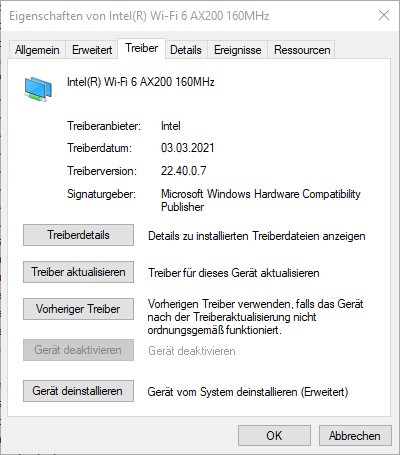 Treiber WLAN: Windows® 10 WiFi-Treiber für Intel® Wireless-Adapter, Version 22.40.0 Klick