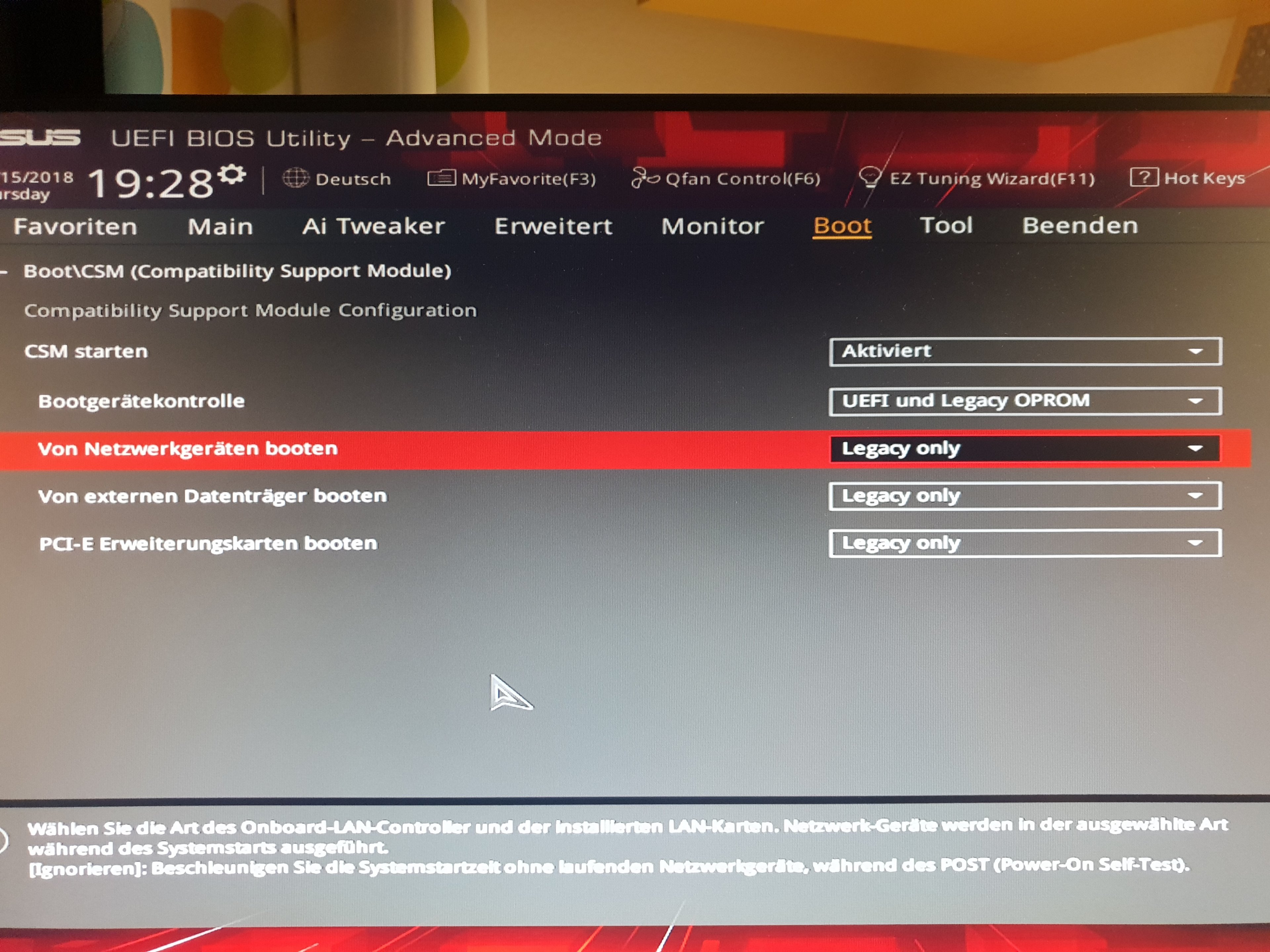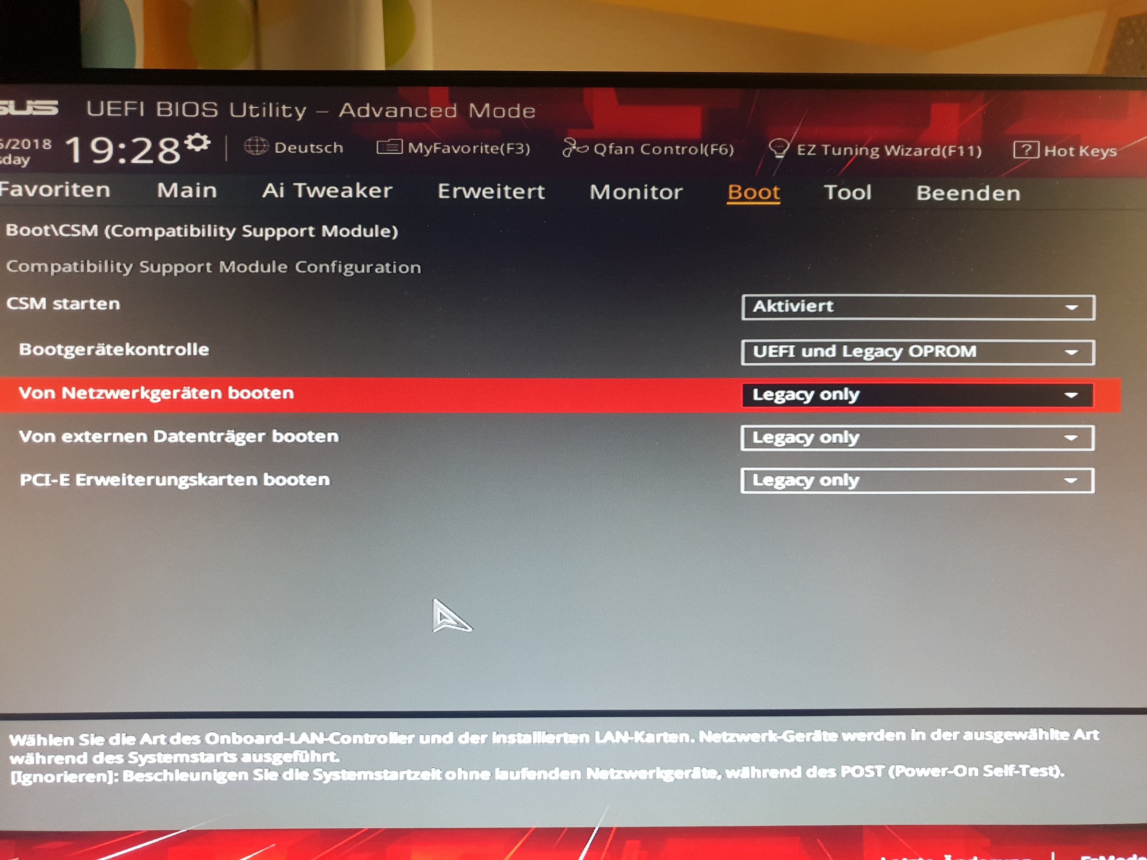 CSM Legacy auf aus Uefi und Secureboot an.