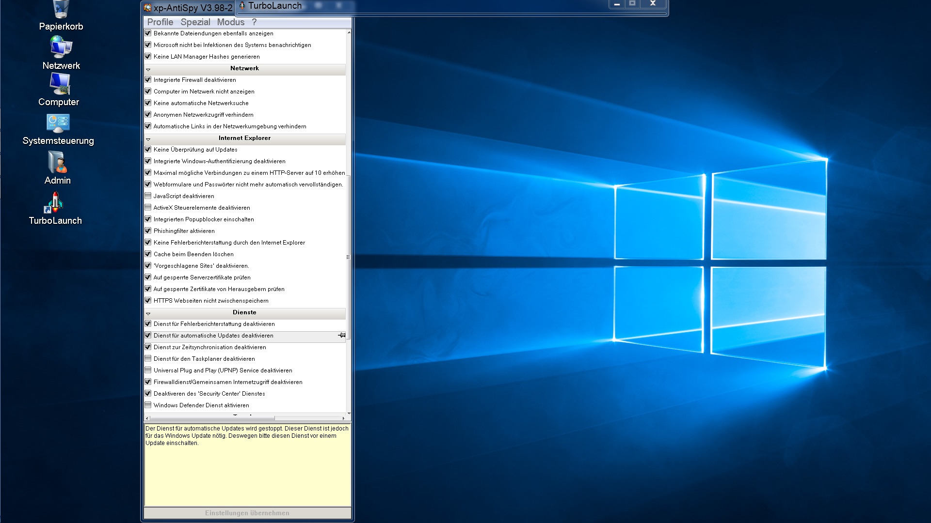 Wenn man damit trotzdem nicht leben kann, muss man halt bei Win8.1/8/7 bleiben, auf Linux ausweichen oder mit irgendwelchen dubiosen Tools sich das System vermurksen und sich dann wundern das man irgendwelche anderen Probleme bekommt.