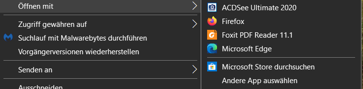 ich möchte, das Microsoft Word in der Liste "Öffnen mit" bei PDF Dateien direkt erscheint. Jedoch nicht als Standard App.