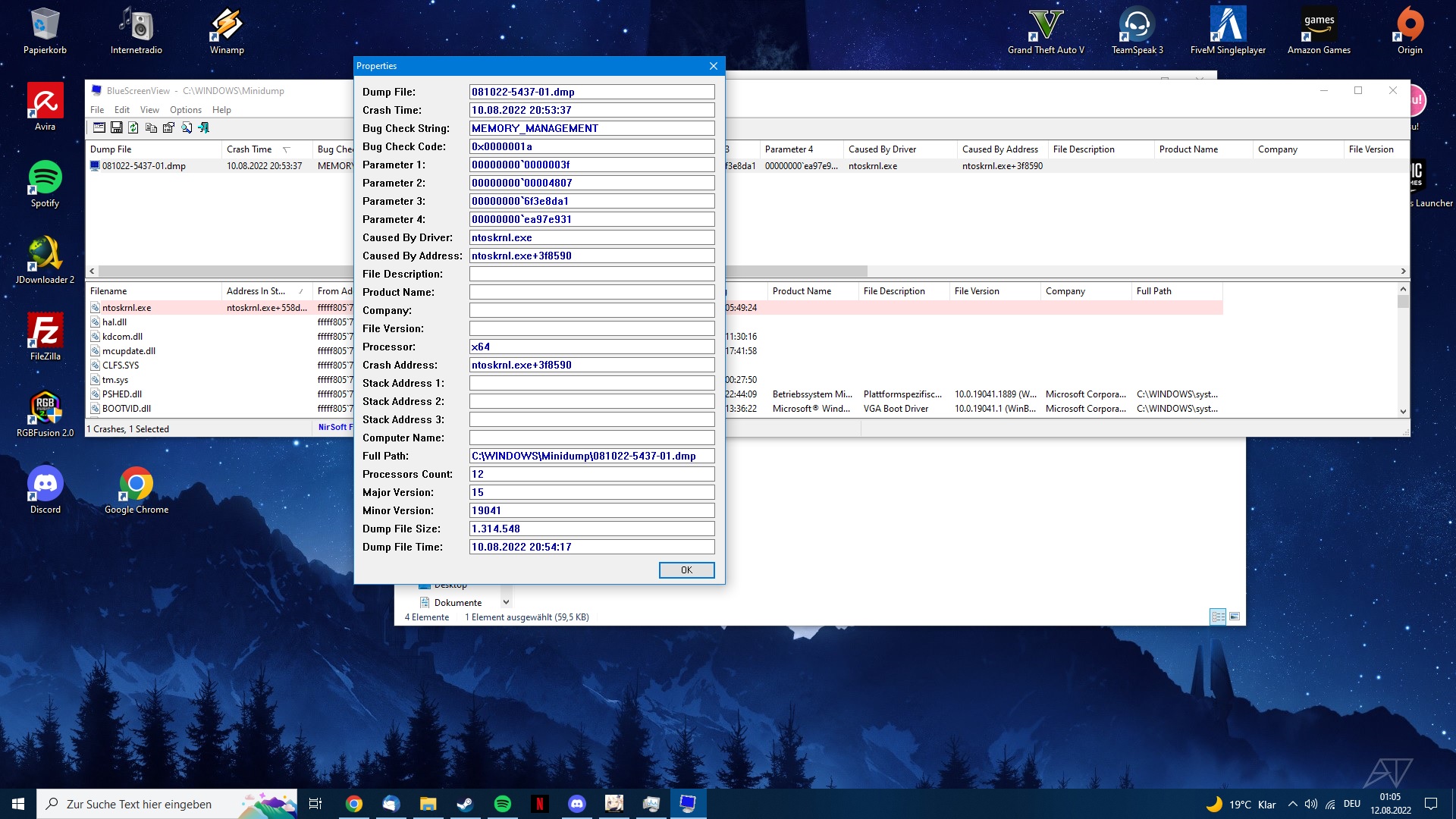 Ich werde mal die .dmp Datei des Bluescreen anhängen. Hier (0x0000001a (0x000000000000003f, 0x0000000000004807, 0x000000006f3e8da1, 0x00000000ea97e931)