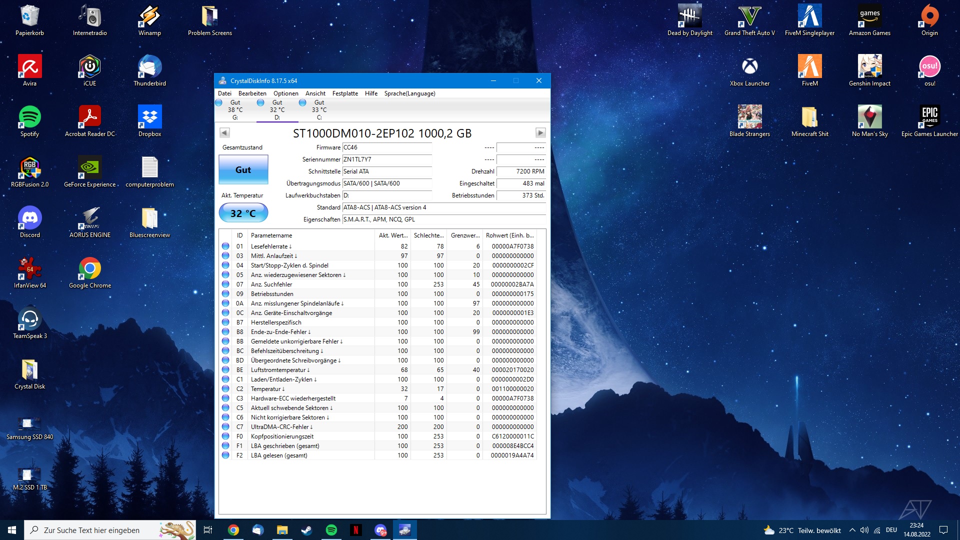 M.2 SSD 1000GB (da habe ich die meisten Spiele drauf)