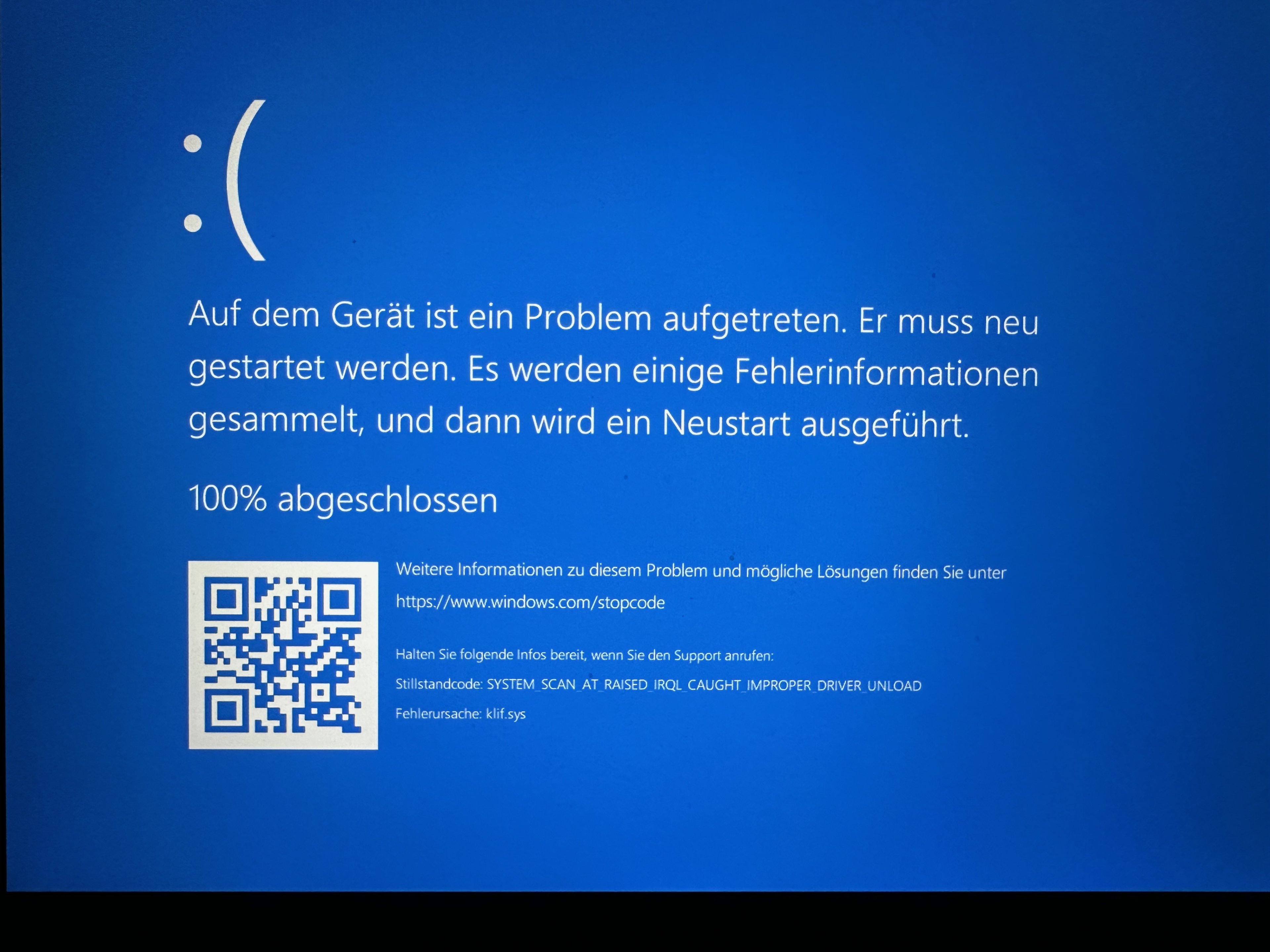 ich habe plötzlich das Problem, dass mein Laptop nicht mehr startet. Er läuft beim Booten in einen Bluescreen - siehe beigefügtes Foto.