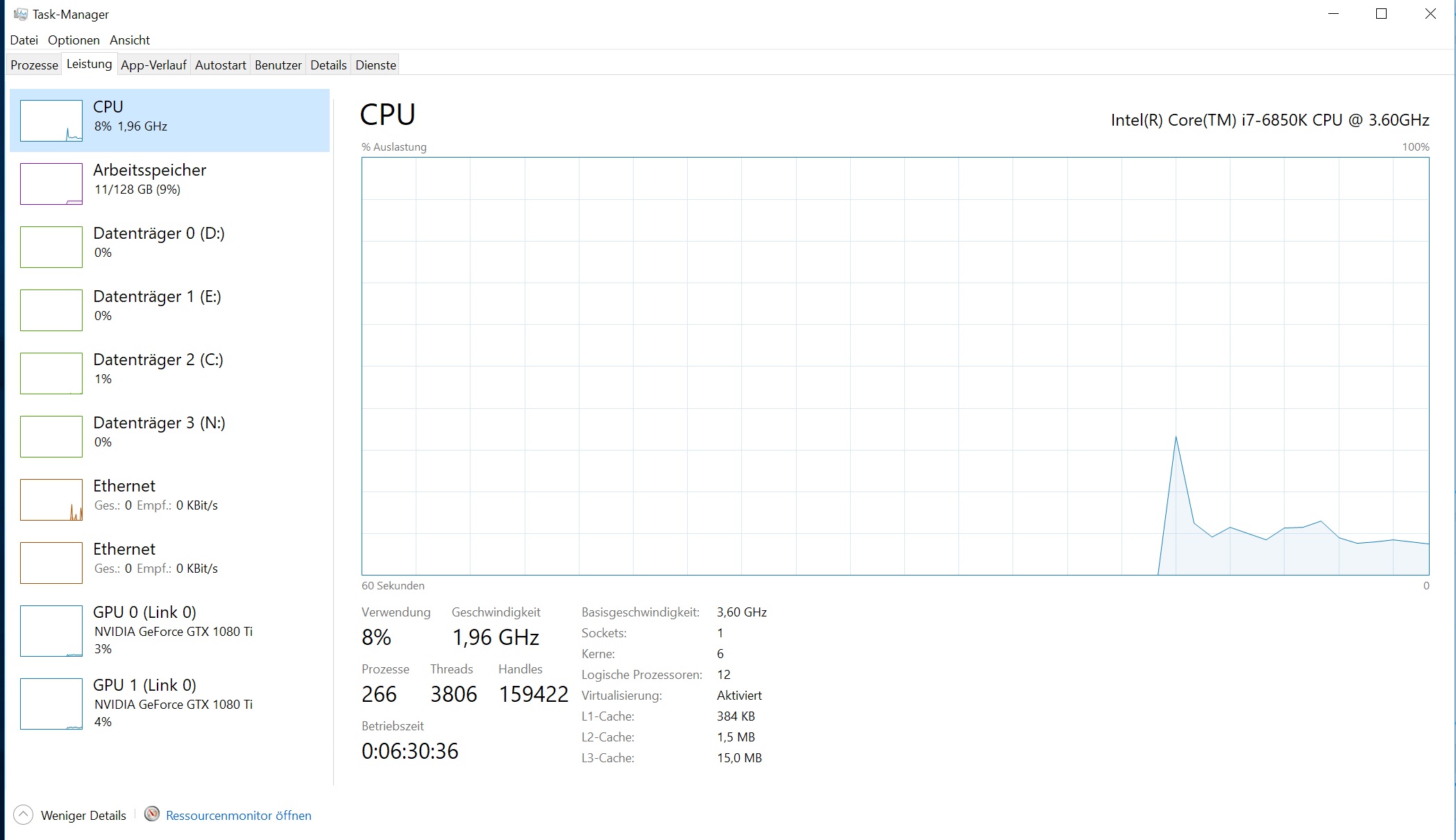 Nö. Klick doch mal auf Arbeitsspeicher und zeig wieviel reserviert ist.Duke711 schrieb:Der Taskmanger zeigt immer den installierten Arbeitsspeicher ohne Reservierung an