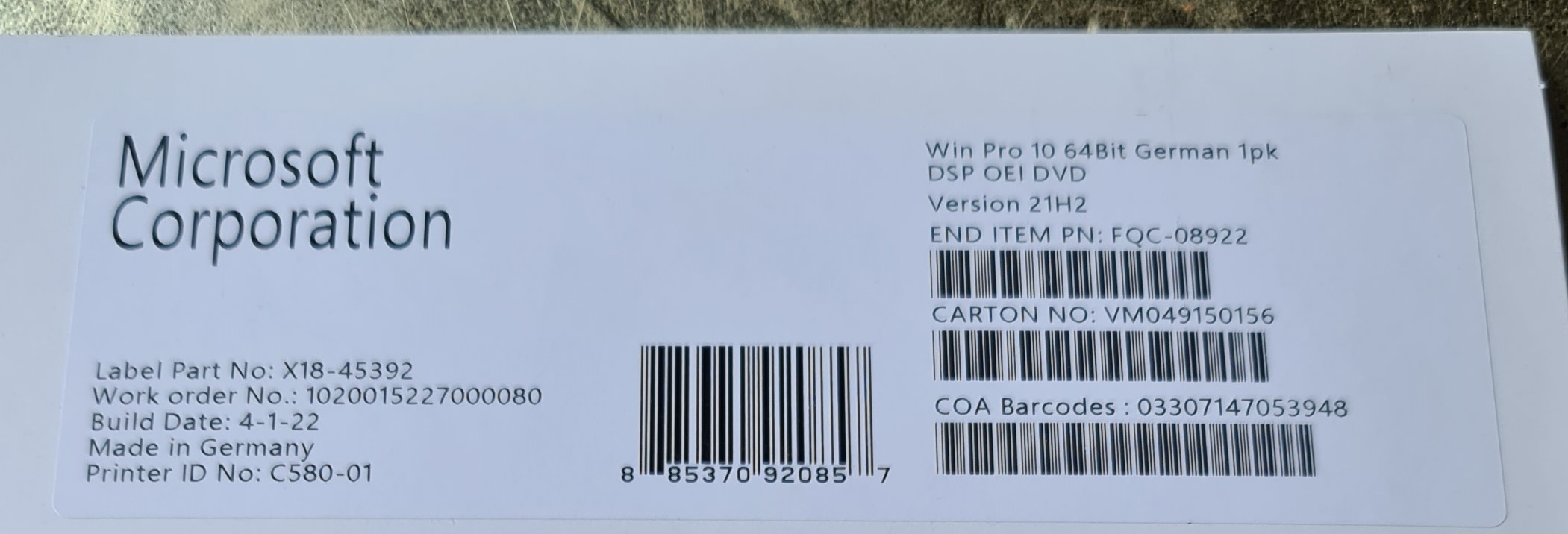 Und was mir auch aufgefallen ist egal ob ich die Original DVD nehme oder USB Stick (Windows 10 Media Creation Tool) sind beide die gleichen Versionen vom November 2021