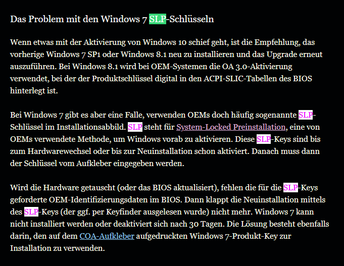 Wikipedia - System-Locked Preinstallation und borncity - Windows 10: Aktivierungs-FAQ