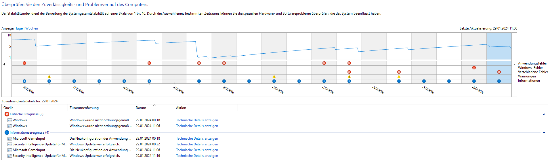 Habe nicht eine Idee was ich da machen kann. Gibt es im Windows irgend einen logger, der den Vorgang mitbekommen sollte und ich nachsehen kann, warum das passiert?