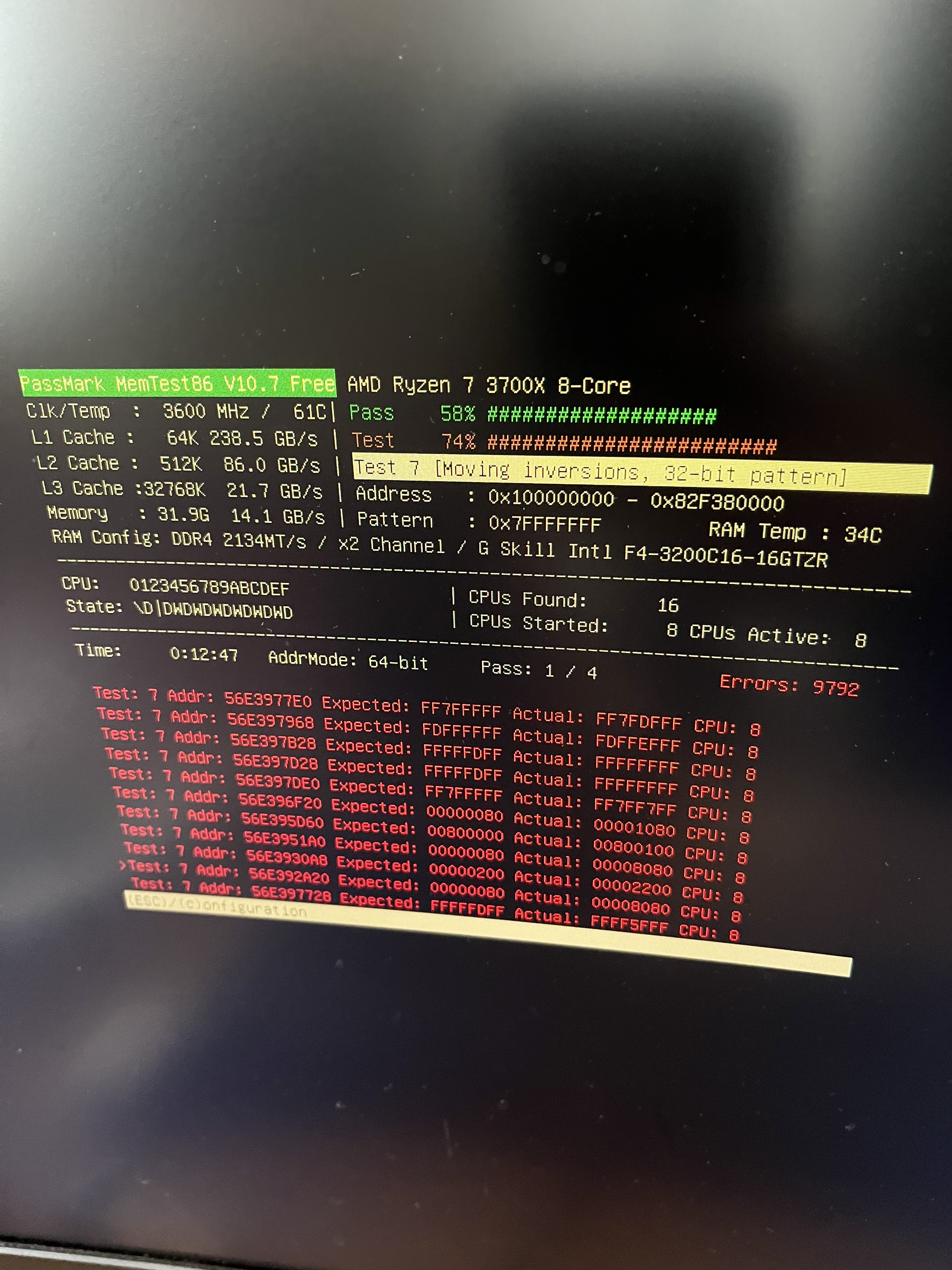 Joa also der Memtest hat abgebrochen weil er nach 60% an die 10.000 Fehler gekommen ist… Memtest testet nur den RAM oder? Weil oben stand der Name von meinem Prozessor