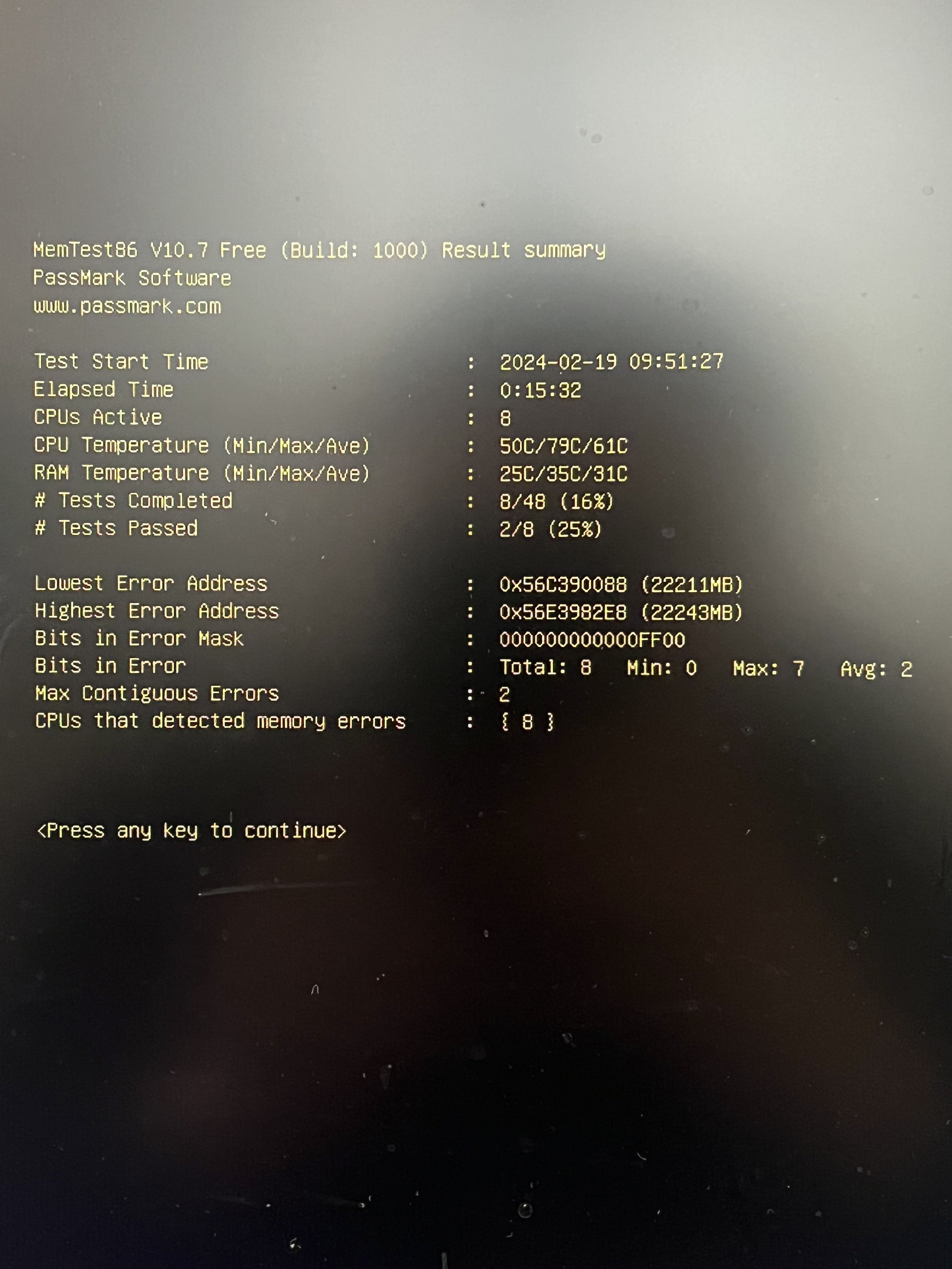 Da steht es wurden Hardwareprobleme gefunden. Mache den erweiterten Test morgen nochmal, iwie wurden mir nach Abschluss nicht die Testergebnisse angezeigt. Heißt dann wohl ich brauch neuen ram oder kann man da noch was machen?