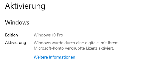 Wenn ich mich richtig erinnere sind Digitale Lizenzen vornehmlich für die Upgrades von Win 7/8.1 bestimmt.Nickel schrieb:Ich gehe davon aus, wenn da nur steht: "Windows ist aktiviert",