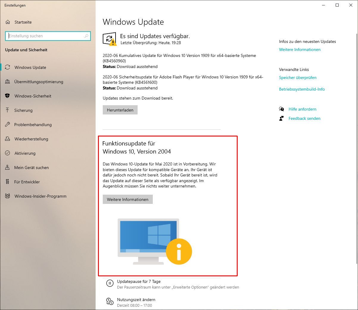 Solange die aktuellen Updates für 1909 gefunden und installiert werden, musst du nichts tun, also abwarten.P4-Freak schrieb:nein, das hab ich nicht