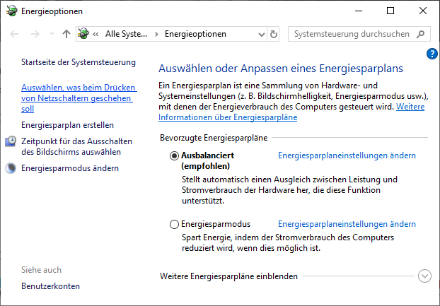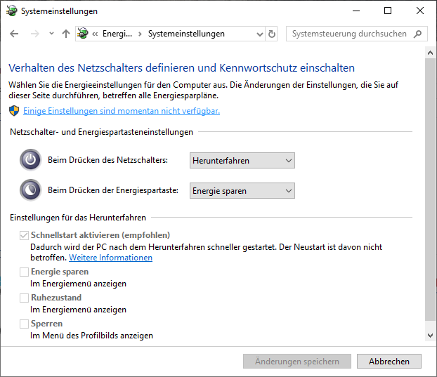 Es gibt eine Reihe von Artikeln im Web, die erklären, dass man bei den Energieeinstellungen Fastboot deaktivieren kann. Nur sieht das bei mir anders aus: