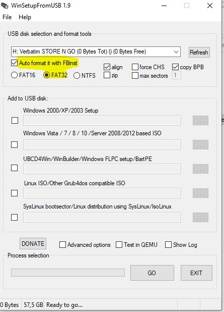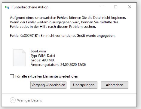 - Danach das entpackte ISO auf den Stick kopieren