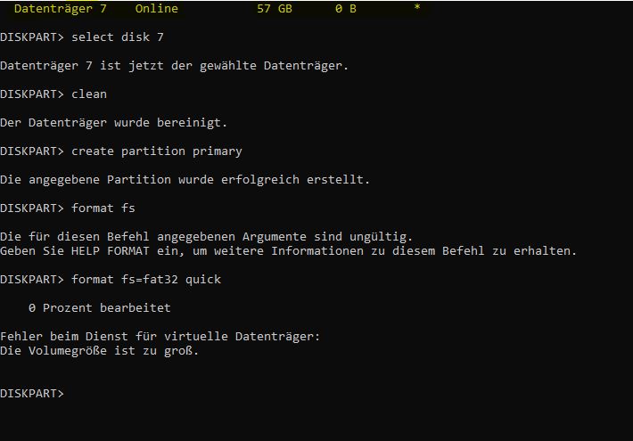 - List Disk eintippen um zu gucken welche Datenträgernummer dein USB Stick hat