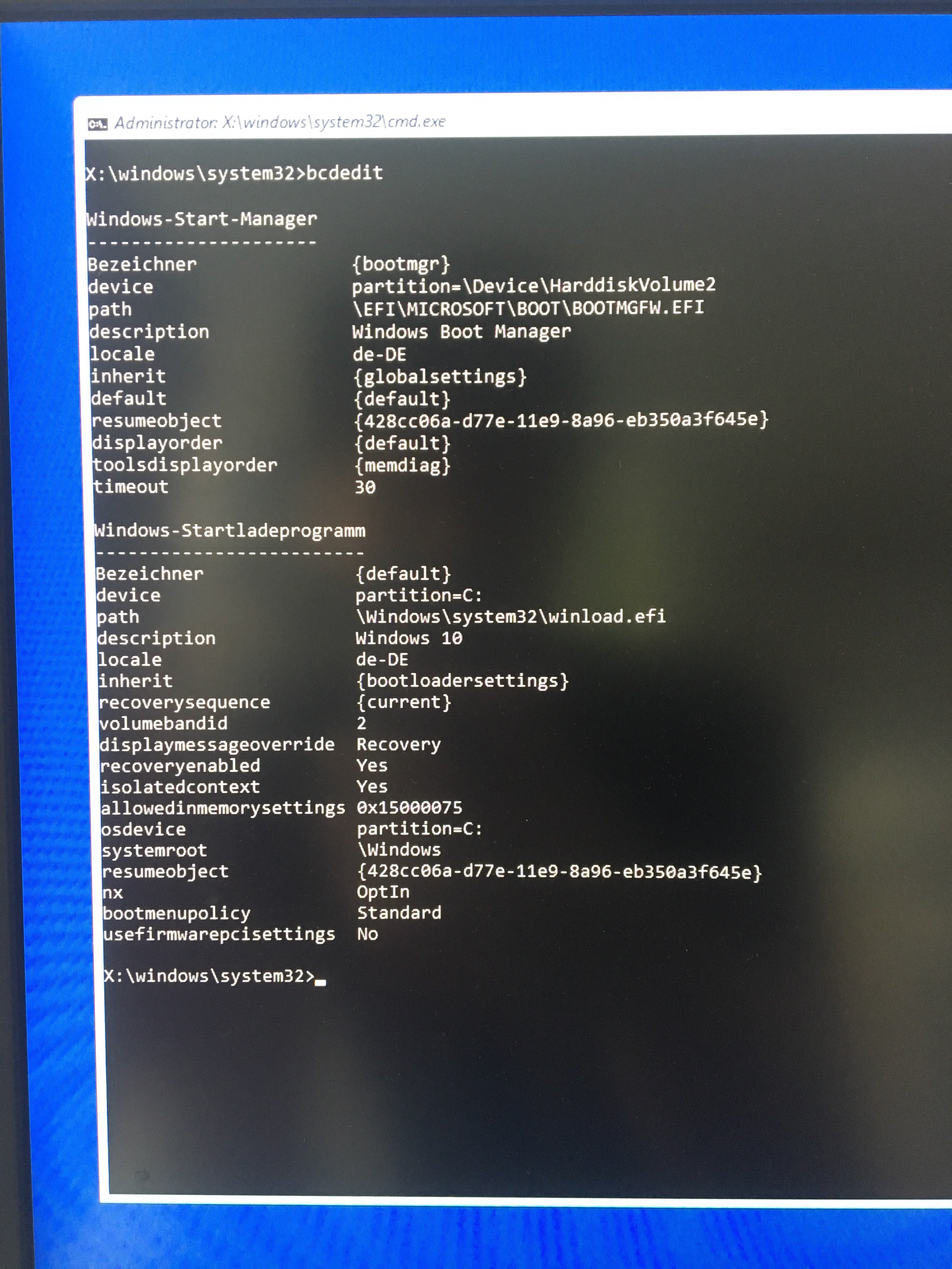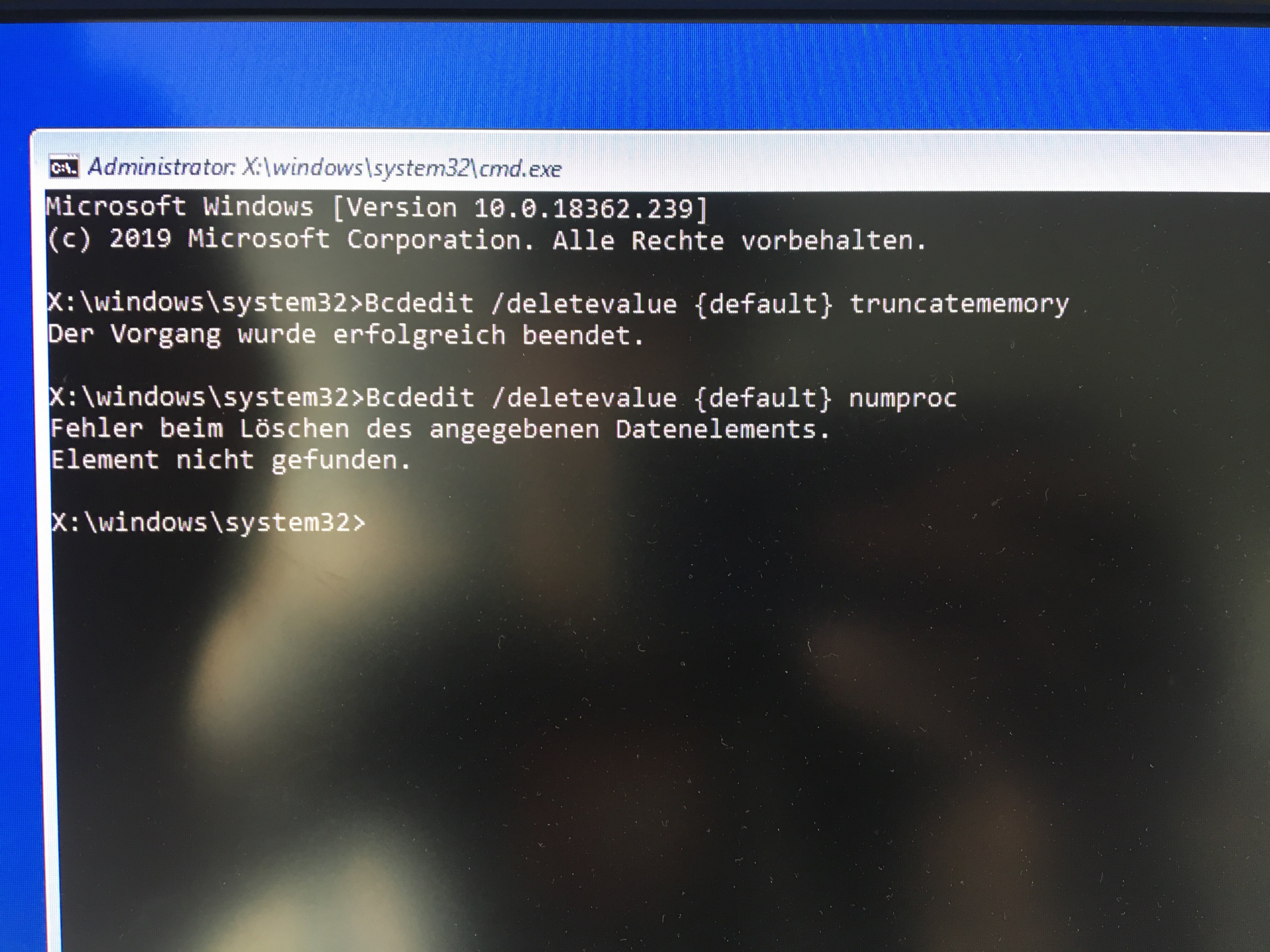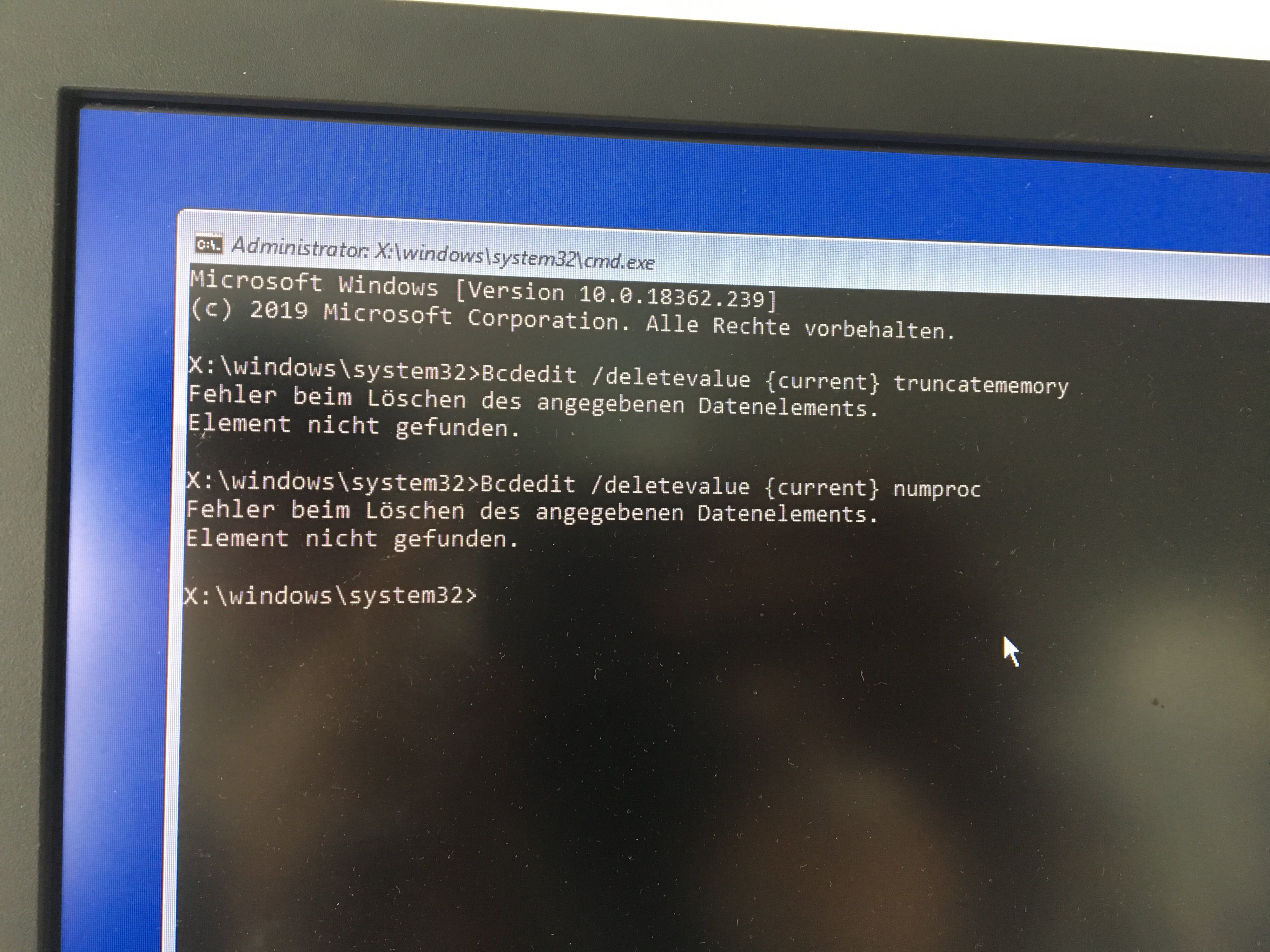 Verschiedene Eingabebefehle, die ich in verschiedenen Foren gefunden habe, versucht in der Eingabeaufforderung einzugeben