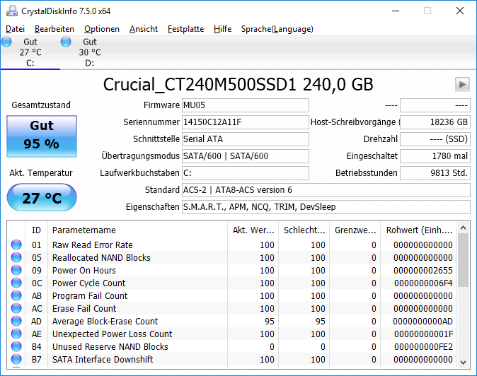 Die Smart Werte waren damals ebenfalls in Ordnung.