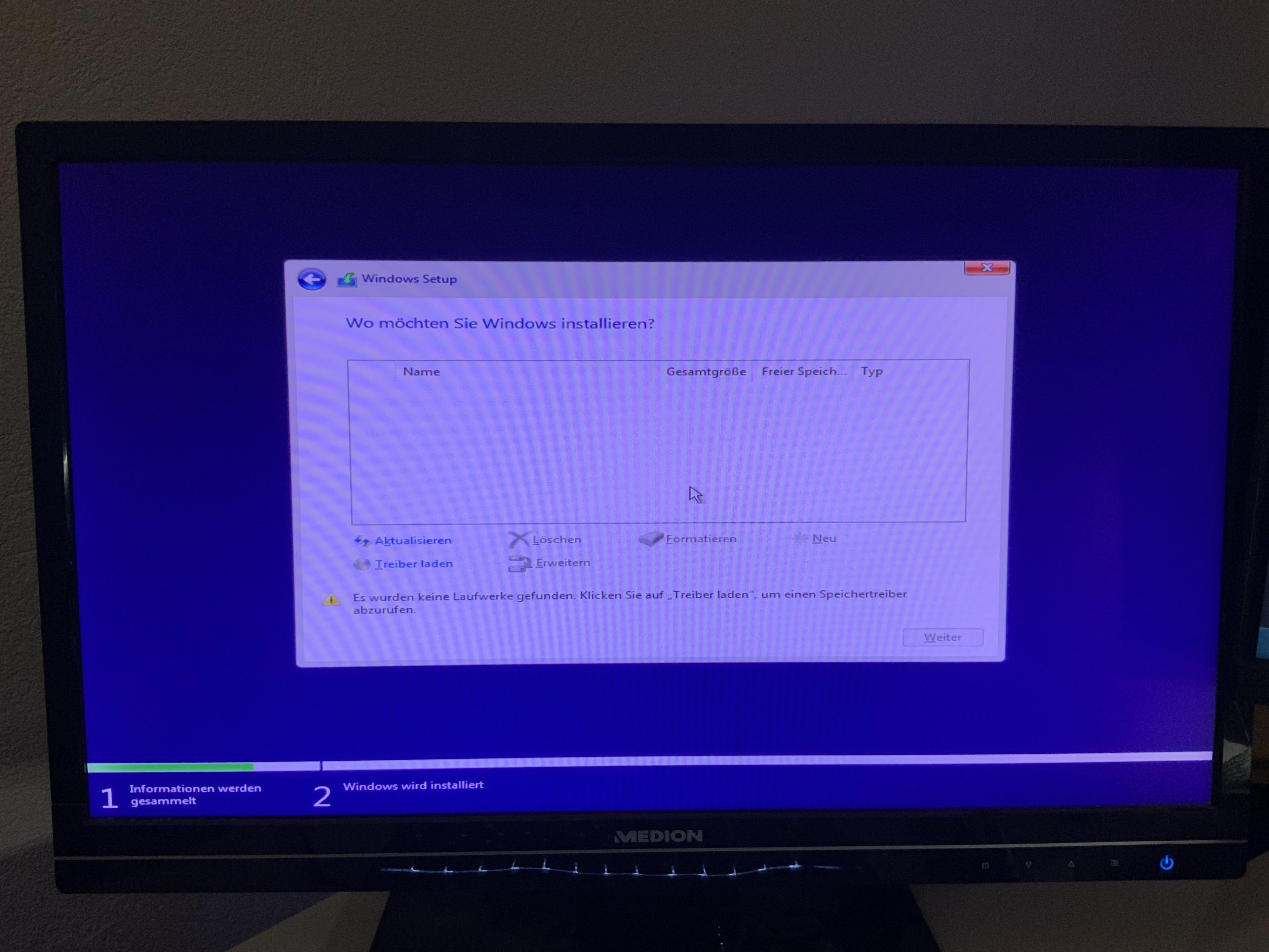 installiere im UEFI modus und das ist das Windows-Setup das erscheint, wenn man noch kein Windows aufm PC hat. Der PC hat zudem kein DVD-Laufwerk