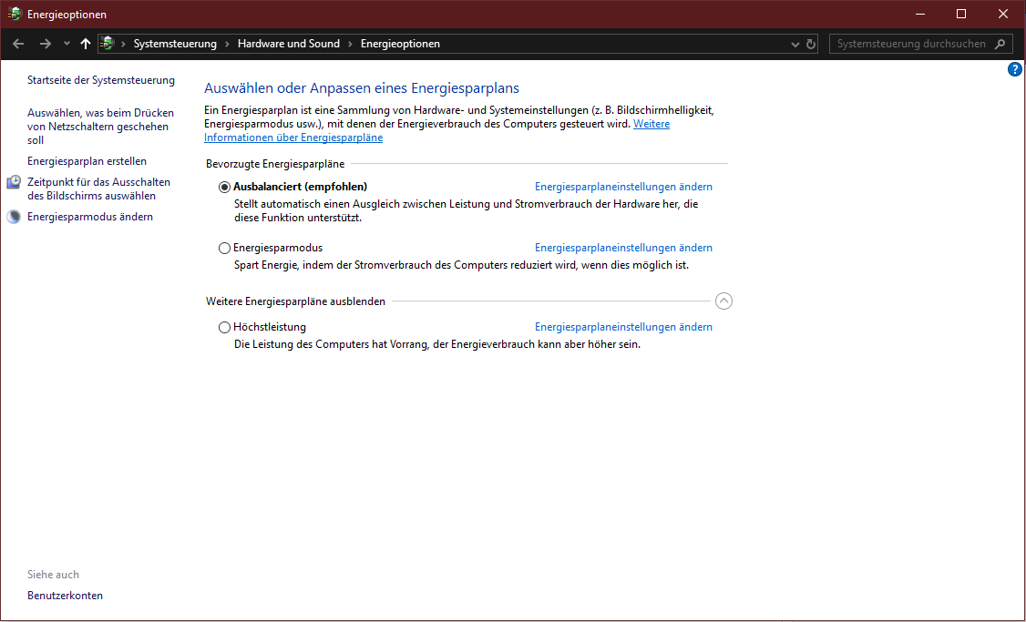 Der Energiesparplan wird bei meinem Desktop öfters von Ausbalanciert auf Höchstleistung gesetzt.