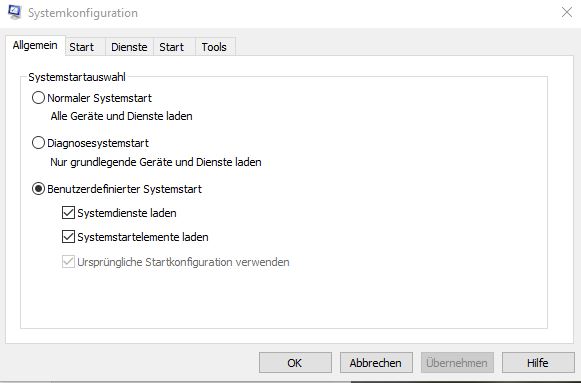 Die Starteinstellungen erscheint trotzdem.