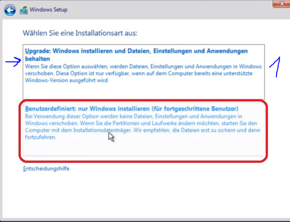 Im oben erwähnten Video ist die Abfrage bei ca. 8:56 zu sehen incl. Hinweis mit Windows.old.