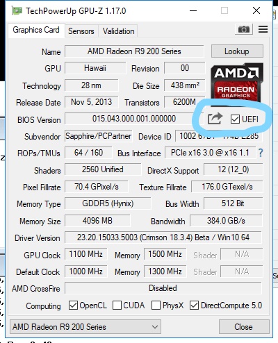 Manche ältere Karten, z.B. Sapphire R9 290(X).. hatte einen kleinen Schalter an der Karte zum umschalten