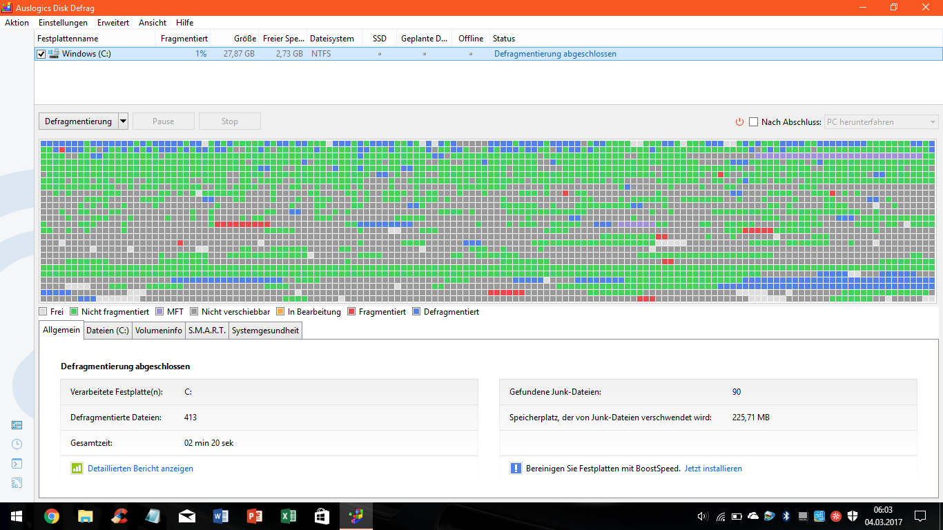 Und im Disk Defrag sieht es ziemlich chaotisch aus auf meinem Speicher:
