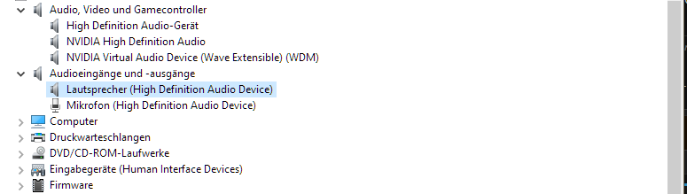Beim Geräte-Manager werden mir unter "Audio, Video und Gamecontroller" nur "NVIDIA High Definition Audio" und "NVIDIA Virtual Audio Device"angezeigt. Unter "Andere Geräte" wird mit einem gelben Ausrufezeichen "Audio Device on High Definition Audio Bus" angezeigt. Wenn ich dann auf Treibersoftware aktualisieren gehe, kommt immer die Meldung: "Windows hat einen Treiber für das Gerät gefunden, bei der Installation ist jedoch ein Fehler aufgetreten." Darunter dann "IDT High Definition Audio CODEC" und "Ein an das System angeschlossenes Gerät funktioniert nicht."