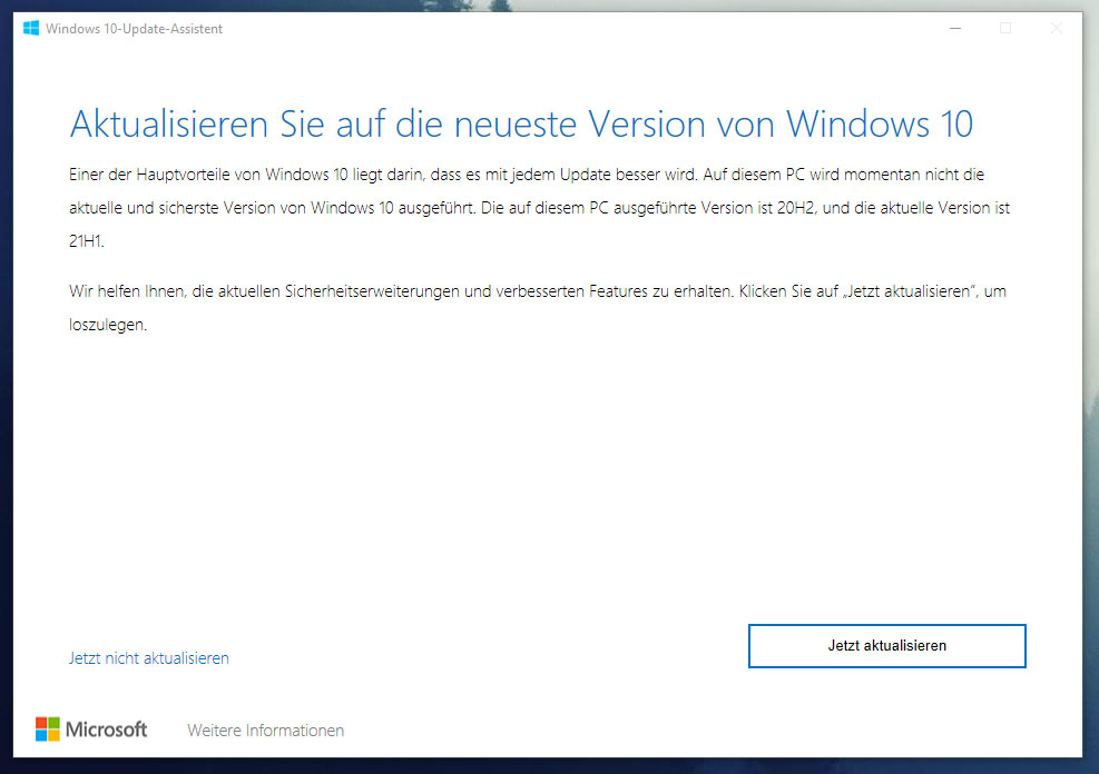 ich wollte heute mein Windows per Update Assistent auf 21H1 updaten.