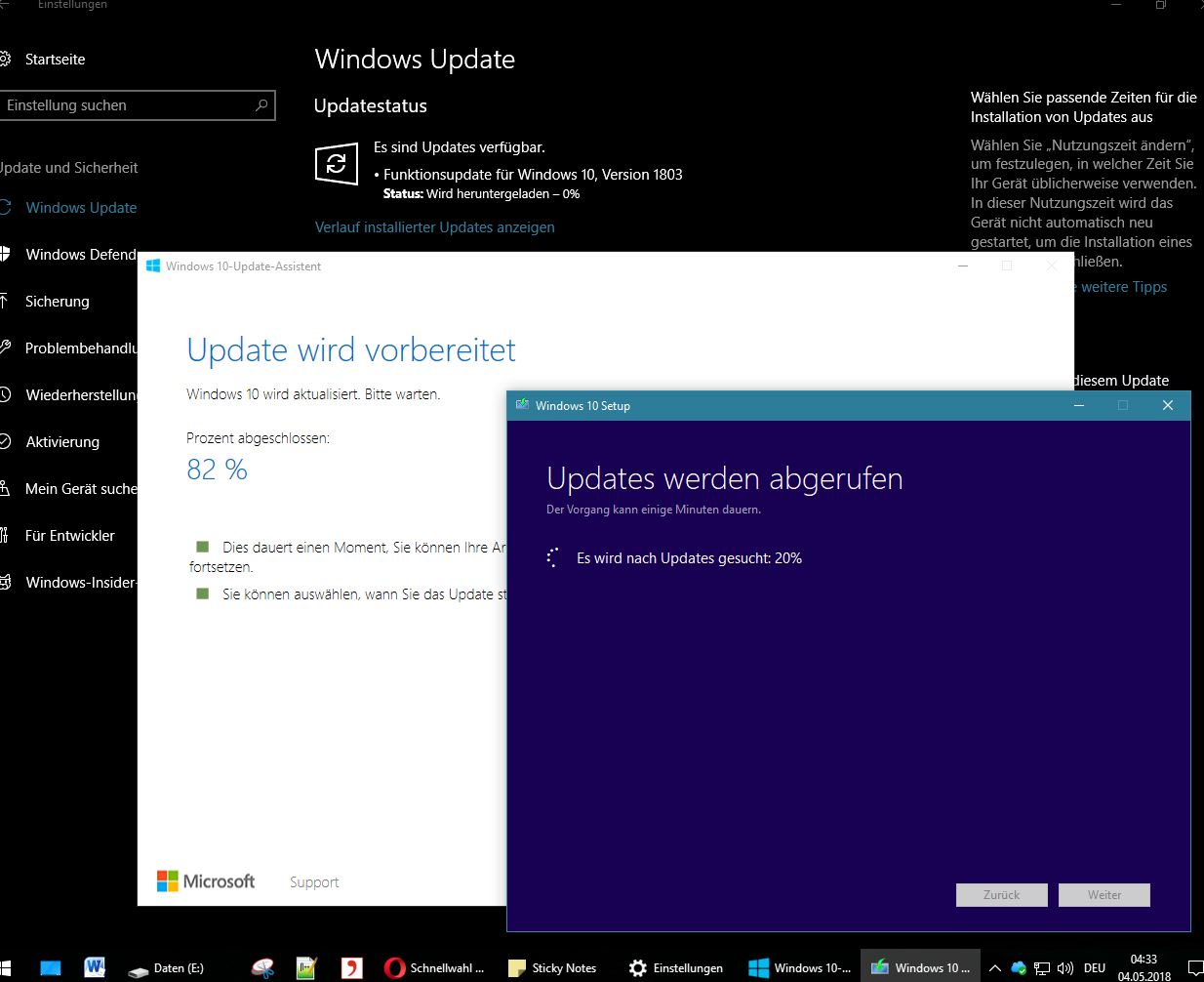 Das Update lädt herunter, dann beginnt die Installation, dann wird neu gestartet. Dann bleibt es entweder hängen oder läuft durch bis zur Annahme der Datenschutzrichtlinie, wobei sich danach nichts geändert hat.