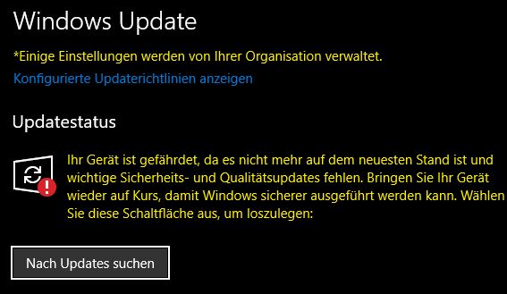 Welche Windows 10 Version ist denn installiert? Für die ersten beiden Windows 10 Versionen gibt es keinen Support und keine Updates mehr. Der Support ist immer nur für 18 Monate von einer größeren Version gegeben.