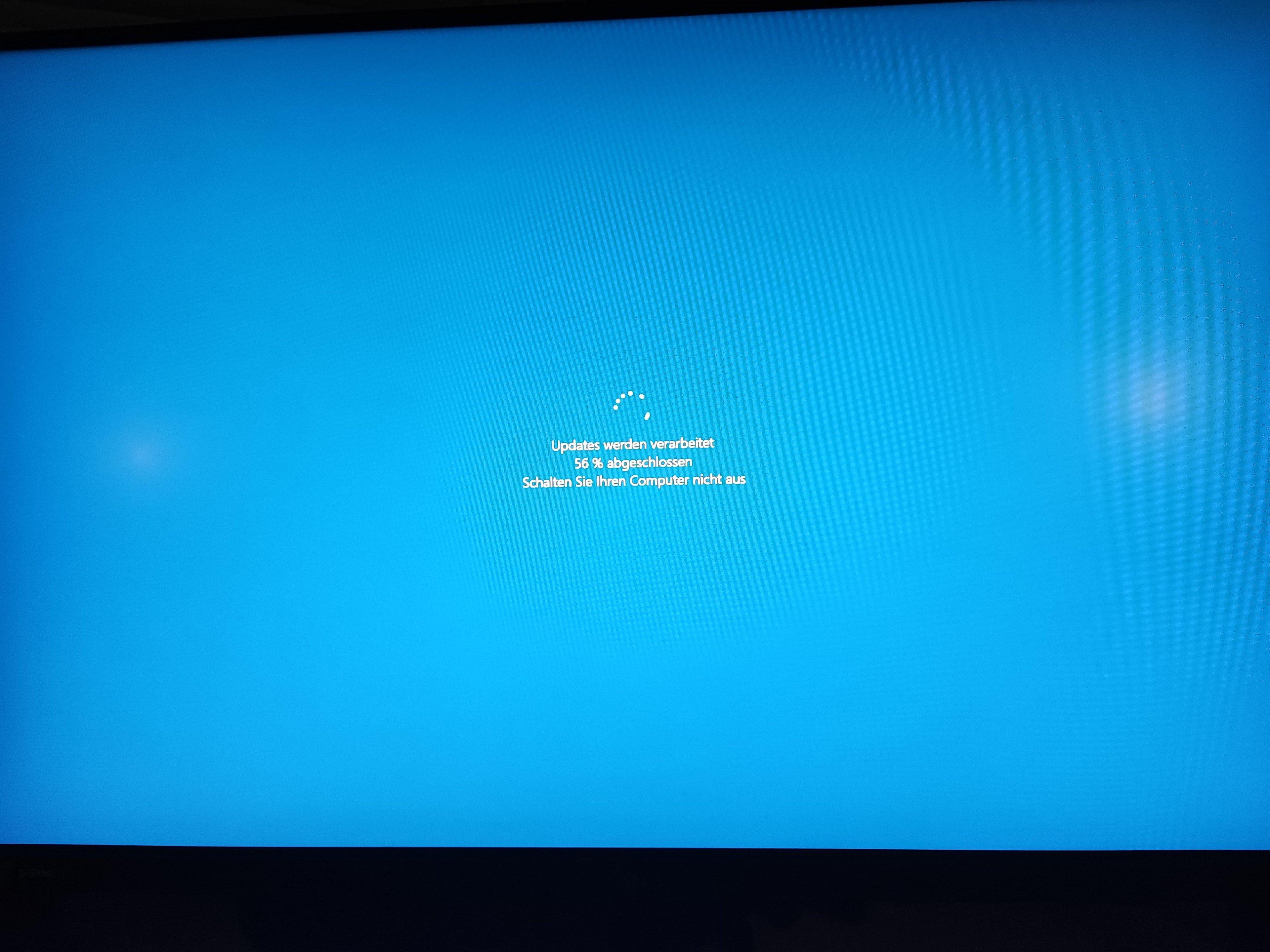Es geht immer bis 56%, dann passiert +-10 min nichts, der Bildschirm wird schwarz und der Rechnener startet neu. Dann kommt für 1 oder 2 sec. die Mittteilung, Das das Update fehlgeschlagen sei und das System wiederhergestellt wurde oder in dem Wortlaut. Die meldung geht zu schnell weg.