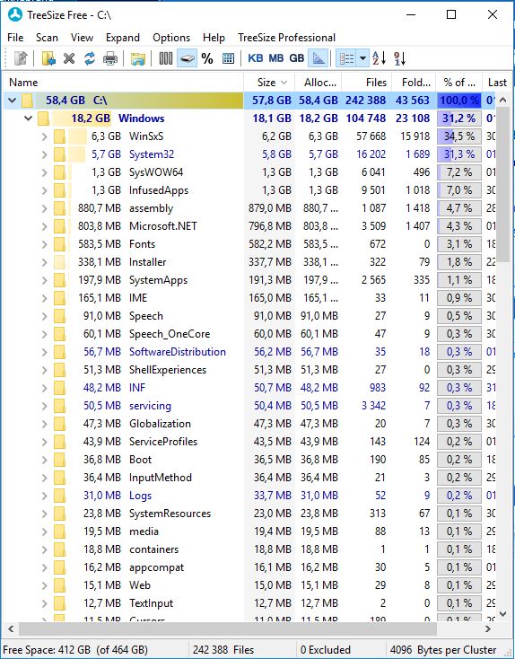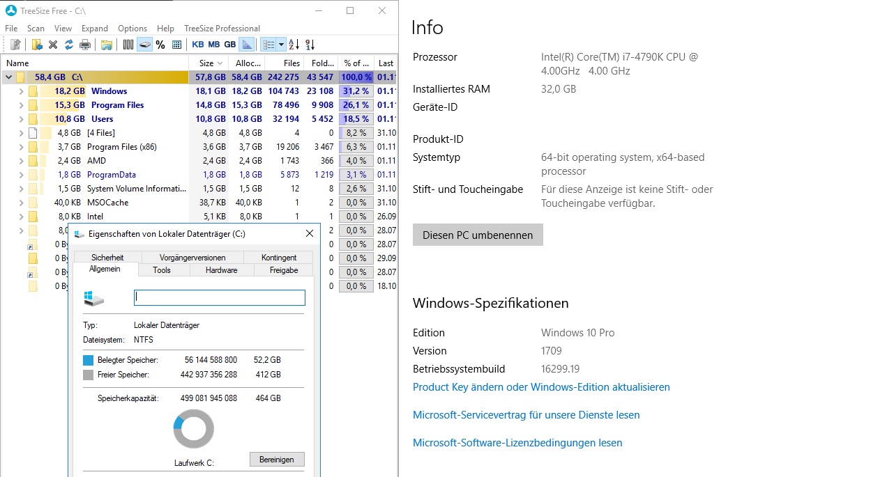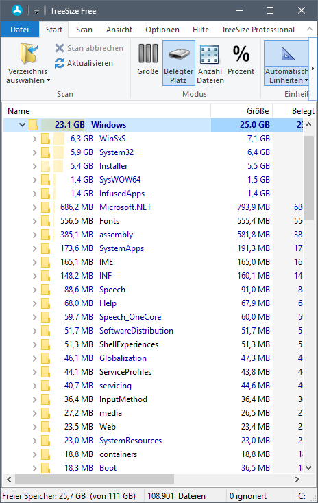 Nach dem Update von 1703 auf 1709 fehlten zunächst 20 GB auf meiner System SSD (vorher waren 28 GB hinterher 8 GB frei).