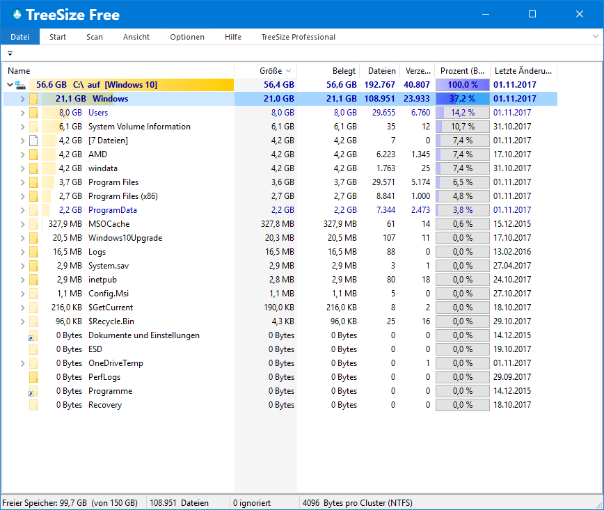 Wenn du was los haben willst, auf der gesammten Platte, muss du weniger Installieren oder weniger persönliche Dateien speichern.