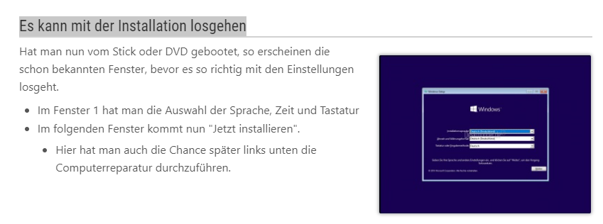 Mit dem davor gesehen Tool funktioniert es nicht. Dieses bricht bei 73% der installation ab und die Fehlermeldung „Fehler bei der Installation von Windows 10“ ploppt auf.