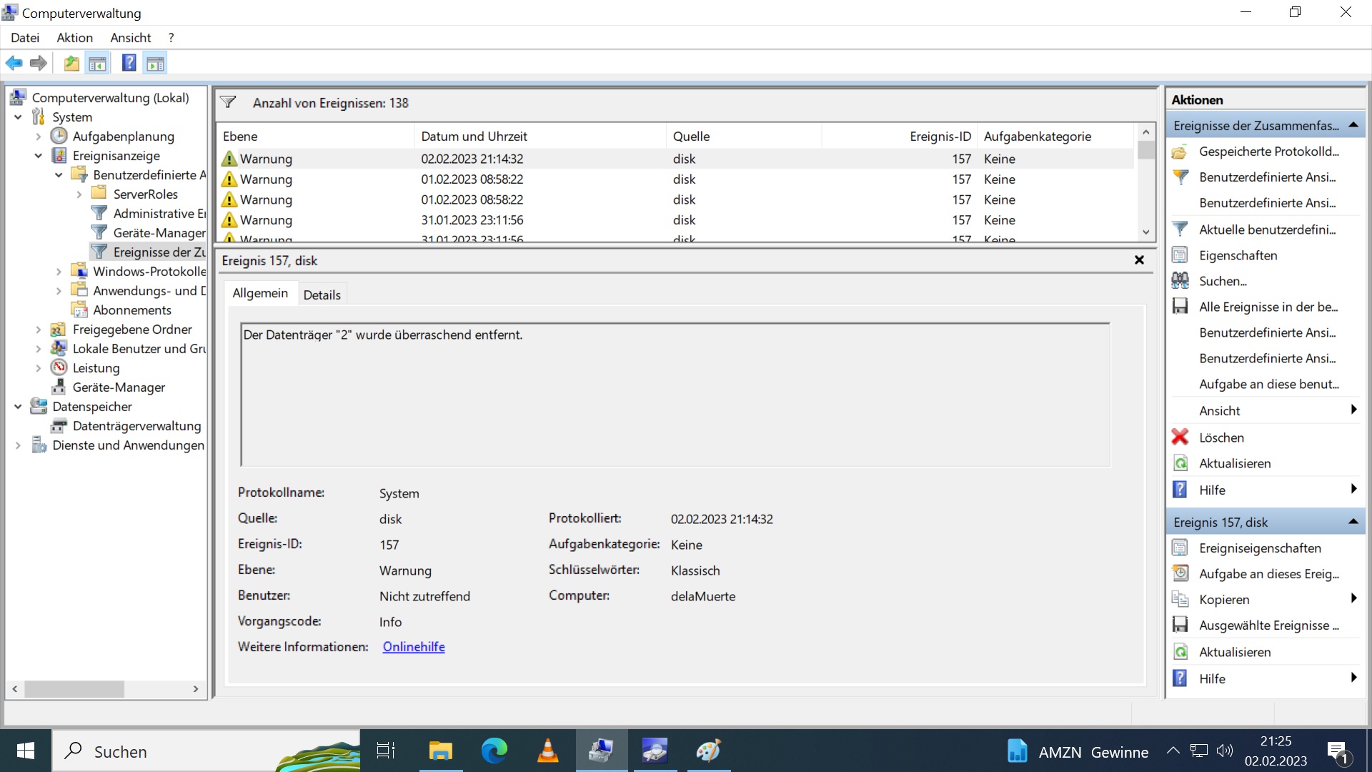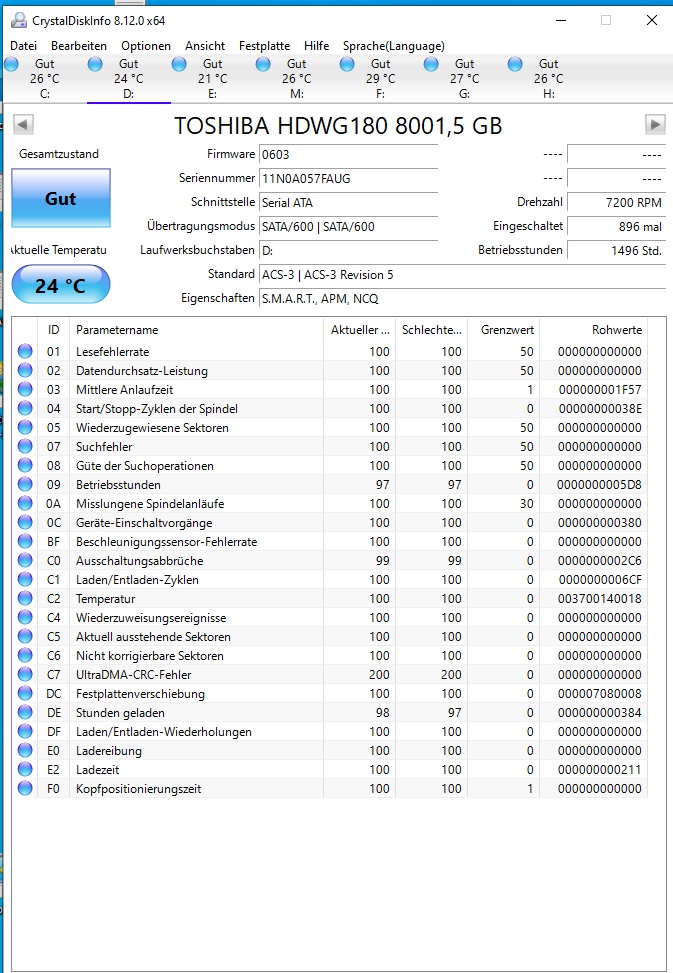 Ab und an steigt eine der 8TB Platten aus. Zum einen wenn länger nicht darauf zugegriffen wird, zum anderen nach dem Ruhemodus, wenn ich den Rechner per WoL zurückhole, wird die Platte "vergessen". Sie wird dann im Explorer mit "?" geführt und in der Datenträgerverwaltung ist sie fort. Auch wenn ich die Festplatten per Datenträgerverwaltung neu einlesen lasse kommt sie nicht zurück. Es hilft dann nur noch ein Neustart.