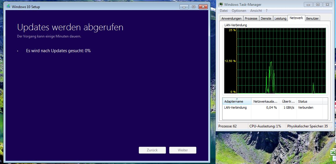 Windows 10 wird ganz normal runter geladen, anschließend kommt dann "Updates werden abgerufen" und das bleibt dann bei 0% stehen.