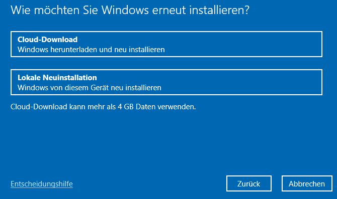 Ich wollte meinen Pc heute mal wieder Zurücksetzen und es ging eigentlich immer ohne Probleme nur heute kam ein neues Fenster was es noch nie gab was genau soll ich da Anklicken bzw. was heißen die Zwei angaben ?