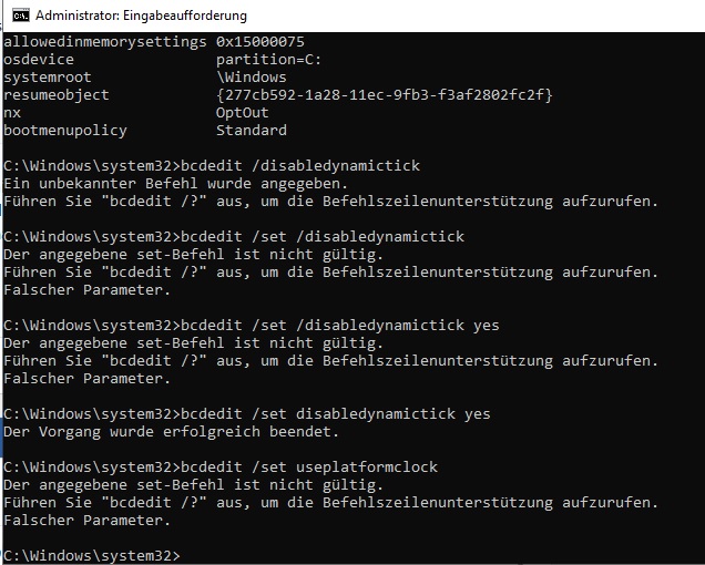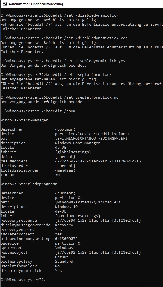 "bcdedit /useplatformclock no" setzt und nicht indem eine standardmässig garnicht gesetzte Zeile löschen lässt