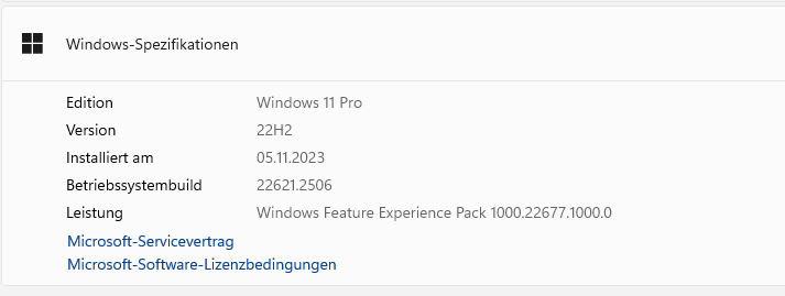 Irritierend ist jedoch das nach dem Update auf 23H2 immer noch 22H2 im System steht. Es läuft aber alles gut.