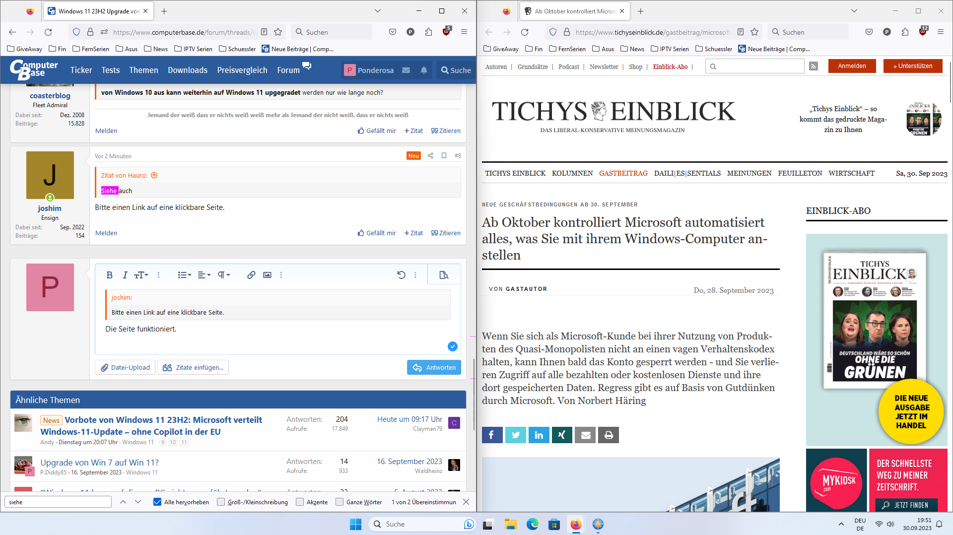 Durch Zufall habe ich gerade bei MSN gelesen, das mit dem neuen Update auf 23H2 das kostenlose Upgraden von Windows 7 und 8 nicht mehr auf Windows 11 upgegradet kann...