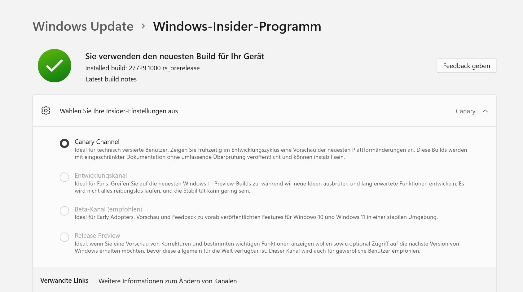 Ich habe jetzt mal, so mutig wie ich bin, die Insider installiert, mal sehen, wie diese läuft.