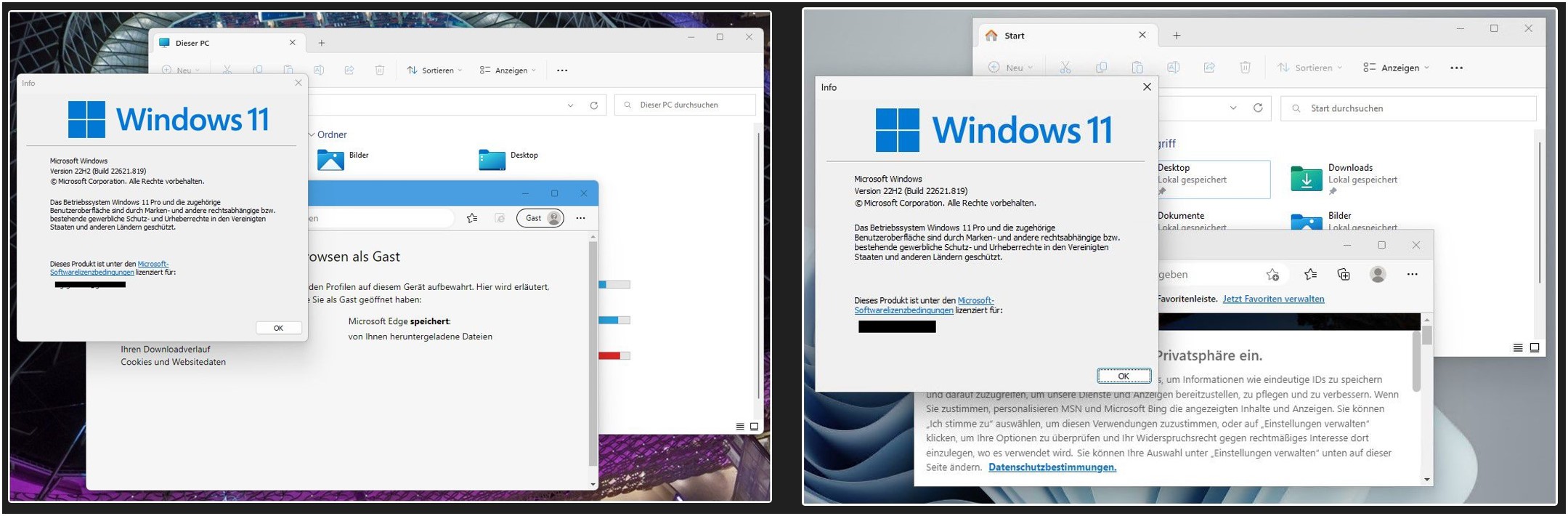 Ich habe Win 11 auf meinem normalen Alltags-Rechner und auf einer VM (Hyper-V). Bei beiden ist die Version identisch. Ich habe jedoch auf dem Alltags-Rechner abgerundete Ecken bei den Fenstern; bei Hyper-V jedoch nicht.