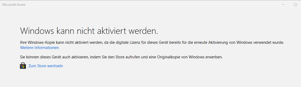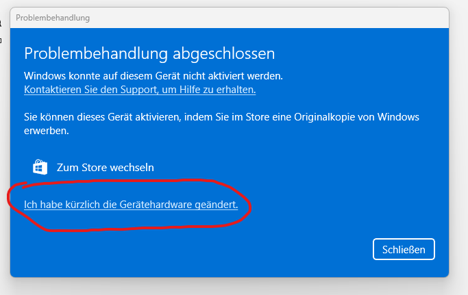ich habe mir heute ein neues Mainboard eingebaut. Nun habe ich das Problem das ich Windows 11 24H2 (Build 26 100.2161) nicht mehr aktivieren kann. Mit meinem Konto bin ich angemeldet und das Gerät ist auch auf der MS Homepage verbunden. Aber einer Aktivierung ist nicht mehr möglich.