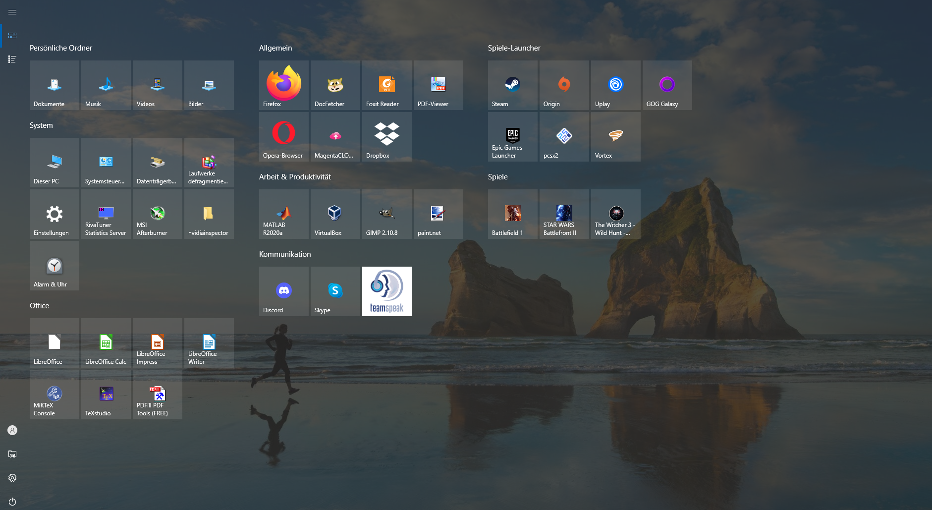Für mich ist das Windows Taste drücken und eingeben was ich suche, fertig. Ansonsten liegt noch etwas Zeug angepinnt auf der Windowsleiste, aber selbst da ist eingeben vermutlich schneller.