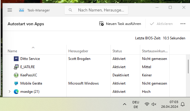 Ich hab von Windows 10 zu Windows 11 gewechselt. Es war eine saubere Neuinstallation. Wie im Titel beschrieben braucht Windows 11 lange (ca. 10 Sekunden, gefühlt viel länger) bis der Desktop angezeigt wird. Das ist aber erst nach den ersten paar Starts aufgetreten, ist zwar nicht tragisch aber nervig.