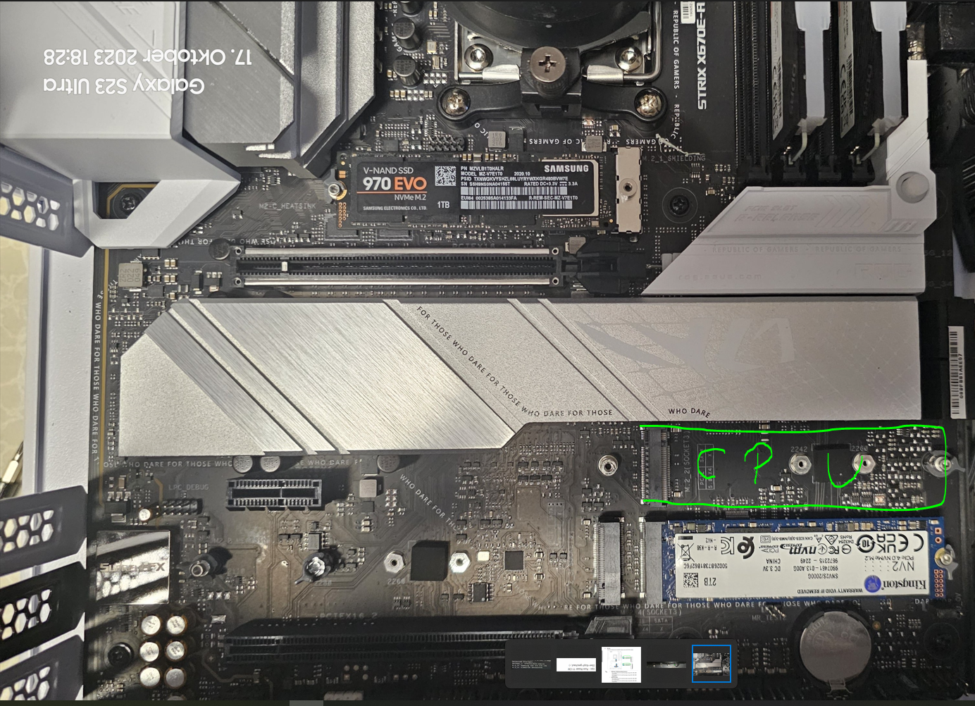 Korrigiere die m2 war links jetzt ist sie oben genau an der CPU also auch ganz falsch...?WhizKey schrieb:Da war sie die ganze Zeit von dort aus hab ich sie jetzt nach oben gesetzt ist es jetzt wieder falsch oder was?