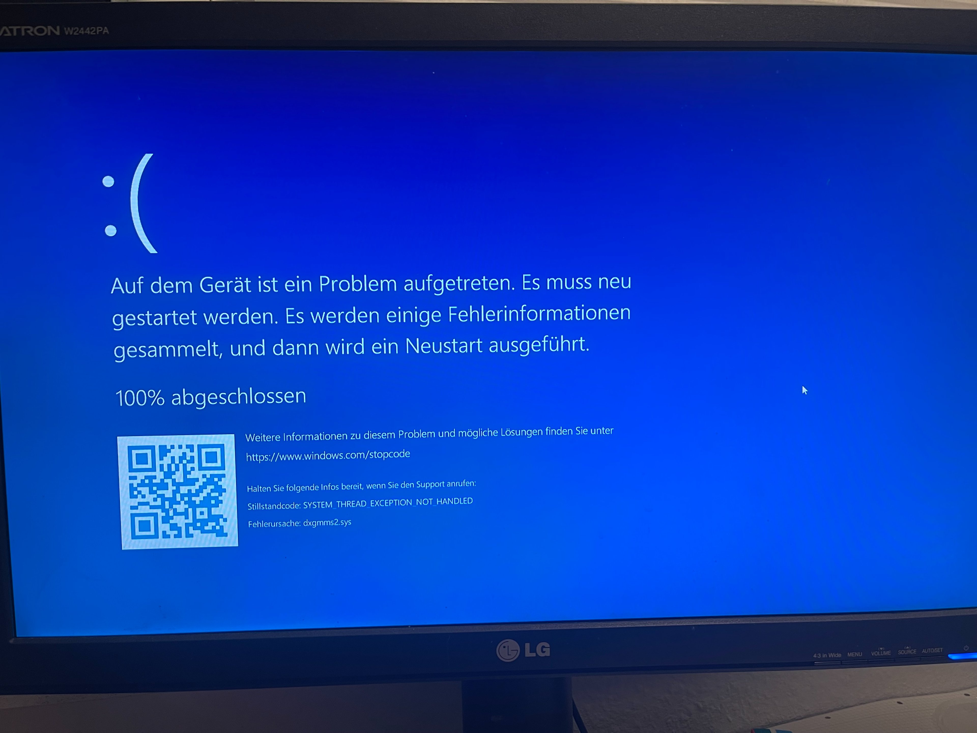 Ich habe seit etwa August 2023 einen neuen PC, den ich mir bei Dubaro bestellt habe. Der genaue Zeitpunkt an dem die Probleme das Erste Mal aufgetaucht sind ist mir nicht bekannt, allerdings sollten es maximal ein paar Wochen nach dem Kauf gewesen sein. Das Problem besteht darin, dass häufig Spiele ohne Fehlermeldung abstürzen (GTA V und Fortnite, aber nicht unbedingt direkt nach starten des Spiels, sondern z.B. auch eine Stunde später erst) und es teilweise sogar dazu kommt, dass sich mittendrin der PC neustartet und verschiedene Bluescreen zu sehen sind (siehe Fotos, Fotos sind schon etwas älter) oder das Bild, das vorher zu sehen war einfriert und der Bildschirm dann 5 Sekunden später schwarz wird, weil der PC sich neu startet.