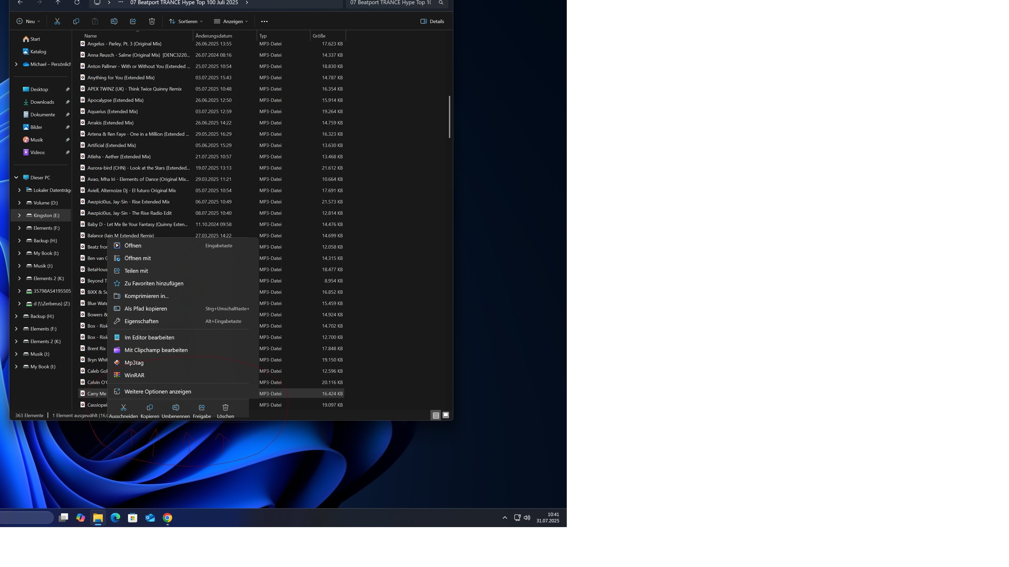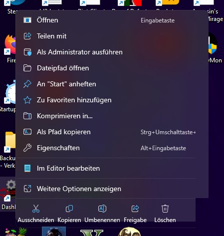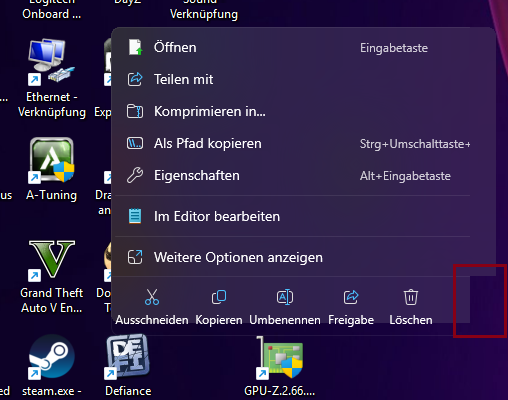 Ich habe außer 7Zip nichts "externes" im Kontextmenü, da ich den Windows 11-PC nur für Spiele nutze, und ein paar "Experimente". Es ist kein Netzlaufwerk im Explorer eingebunden, allerdings gibt es eine Freigabe (Ordner) auf dem Windows 10-PC, um gelgentlich z. B. Downloads, oder Screenshots wie diese 'rüber zu kopieren.